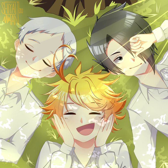 約束のネバーランド やくそくのネバーランド 3人 いつめん エマ ノーマン レイ 約束のネバーランドエマ 約束のネバーランドレイ 約束 のネバーランドノーマン 約束のネバーランド面白い 仲良し イラスト ネバーランド アニメ
